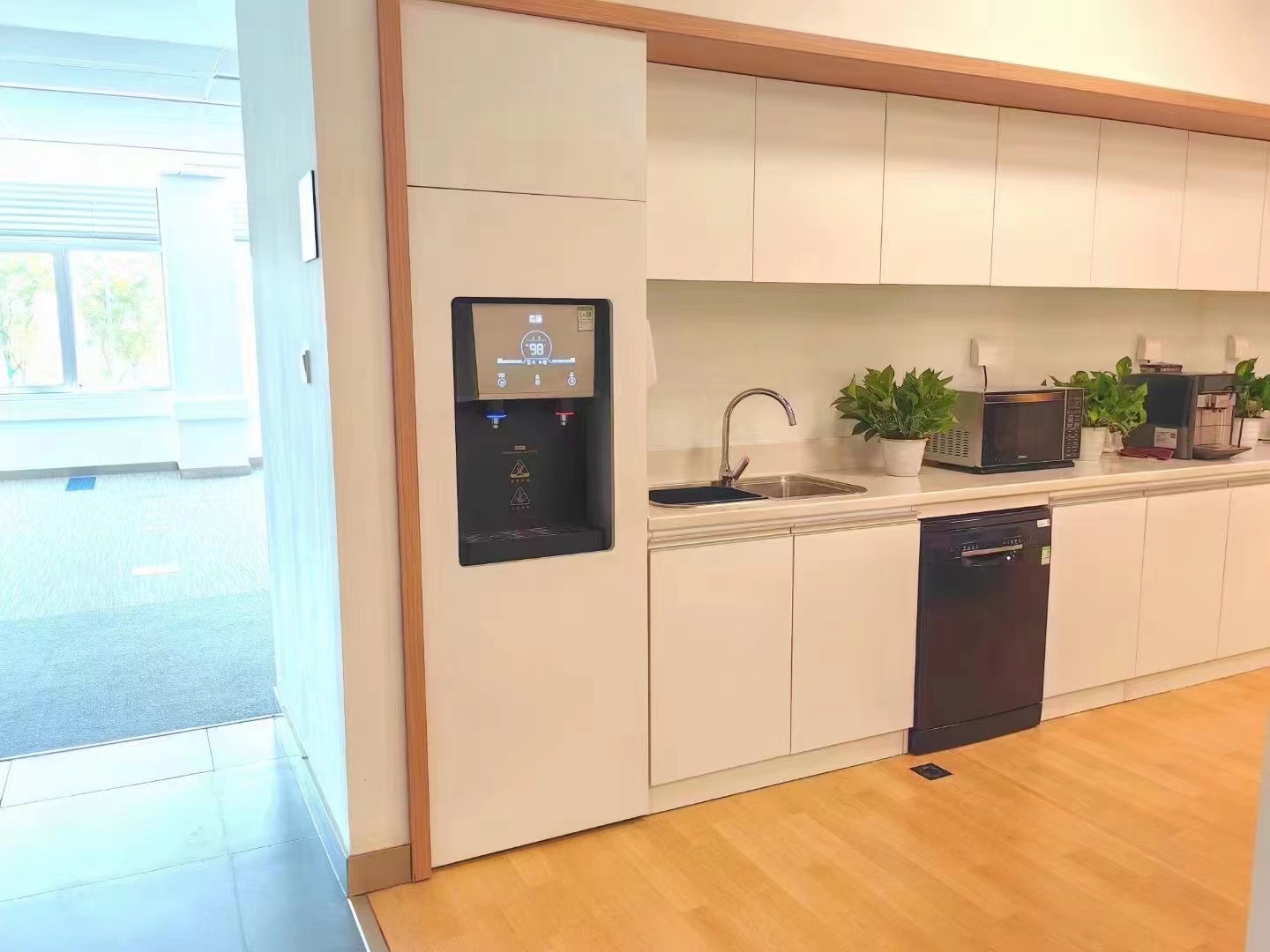 嵌入式开水机需提前规划,核心是与茶水柜、餐边柜精准适配。常规办公柜体进深35-60cm,开水机厚度控制在30-55cm、宽度30-50cm,优先选可灵活调尺寸机型。家具定制阶段需同步规划,预留带防高温隐患的电源、进水口,管线隐藏预埋,预留≥5cm散热空间,避开直射、潮湿及热源,同时预留检修口方便维护。